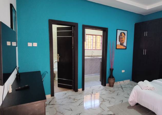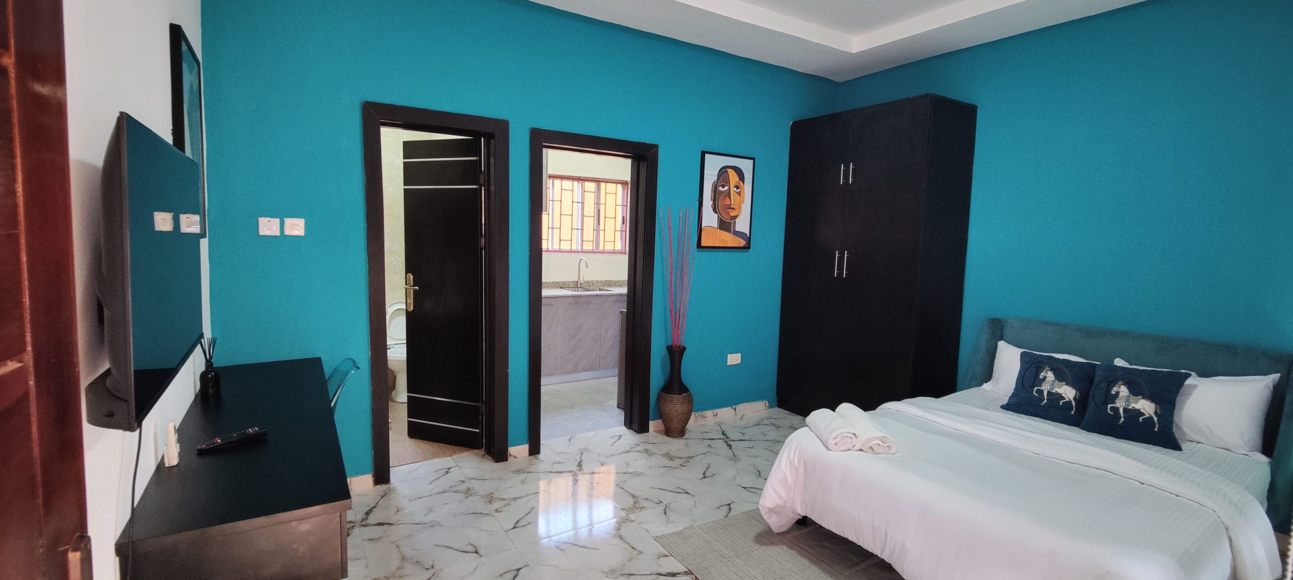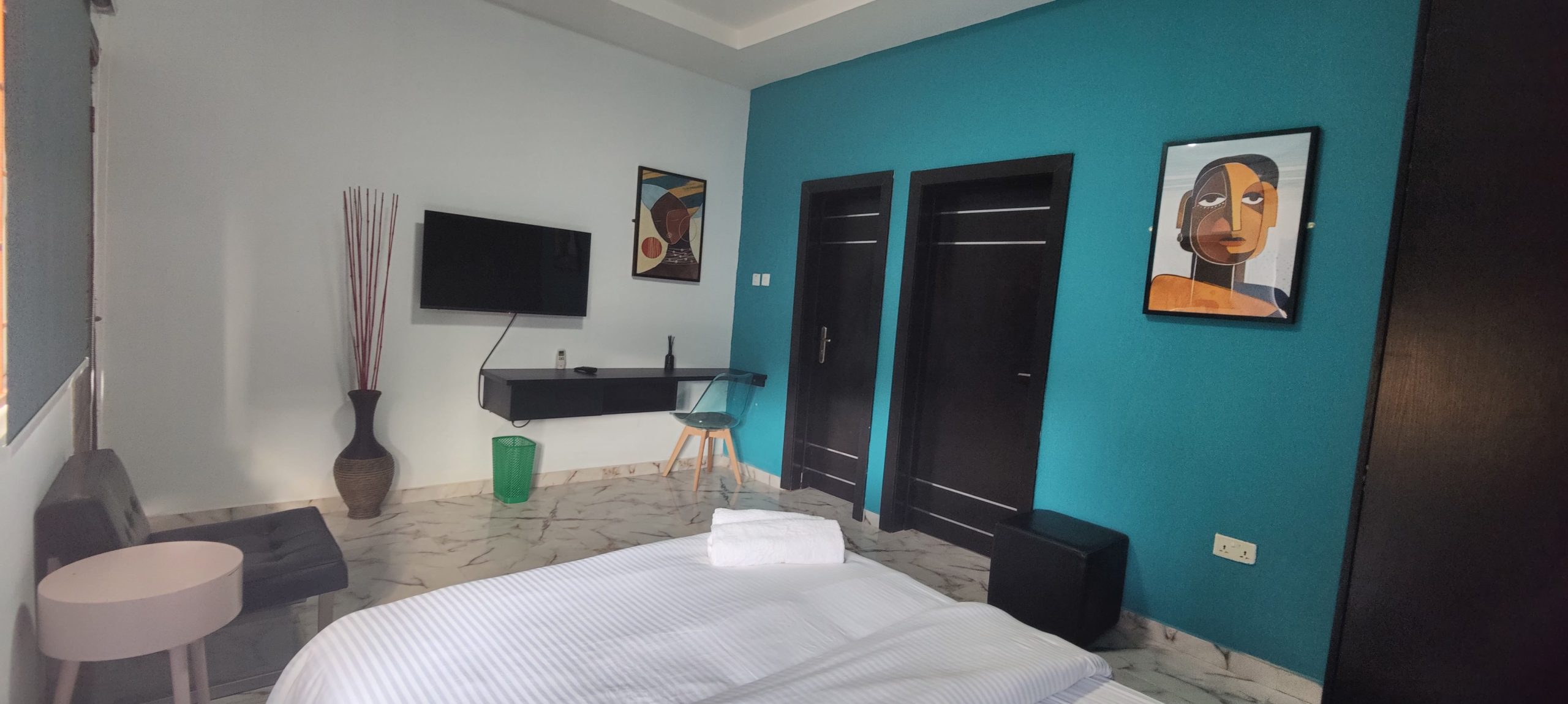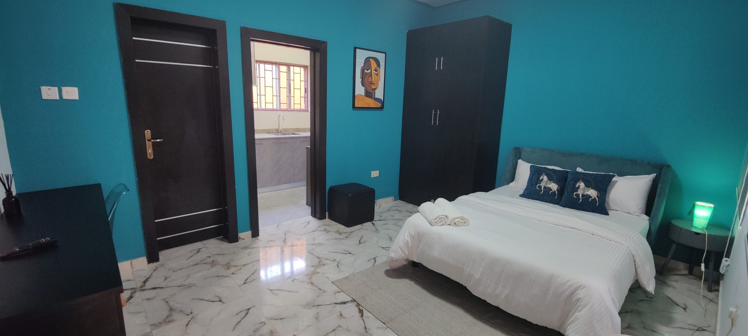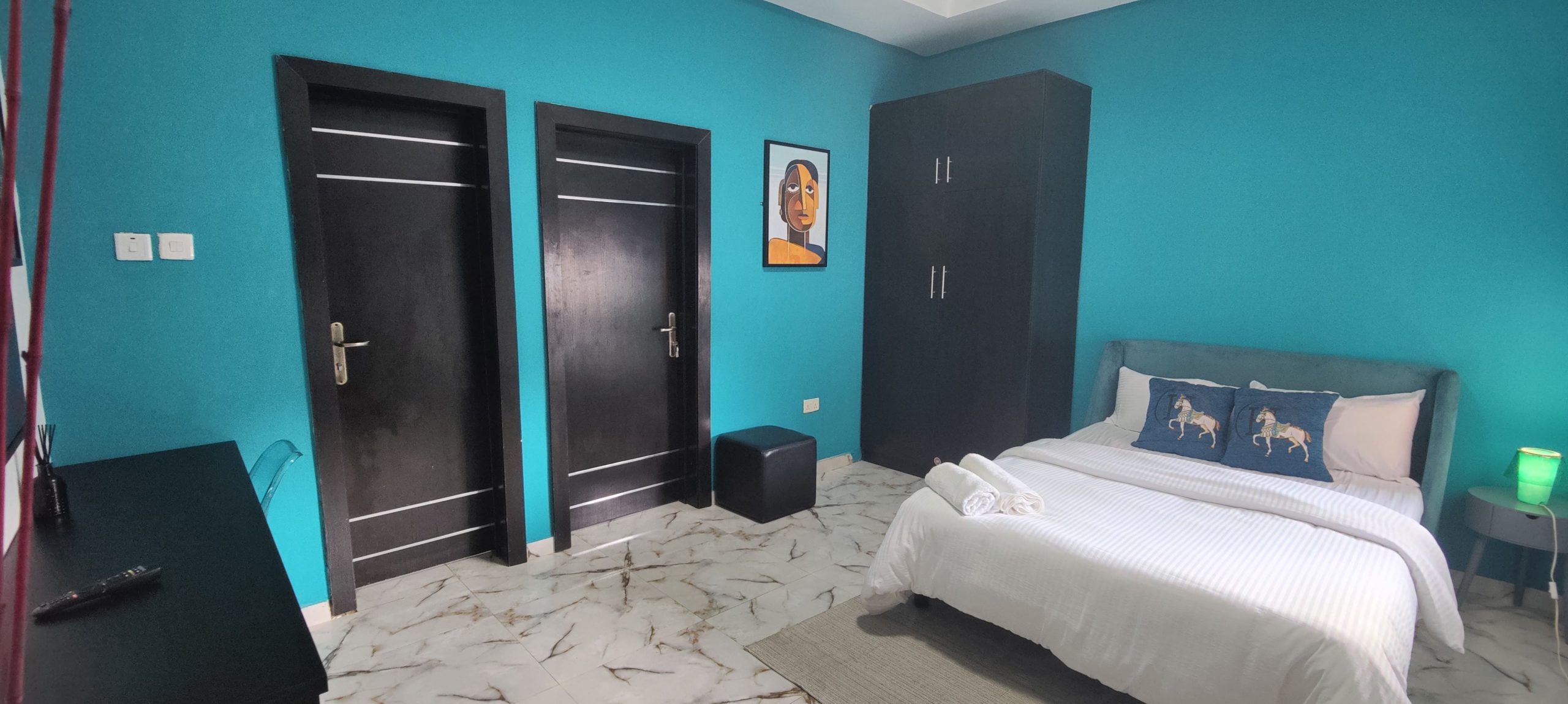 Escape the hustle and bustle of Lagos in this stylish and serene studio apartment, nestled in the heart of Victoria Island. Immerse yourself in the soothing ambiance of our teal-themed interior, designed to provide a tranquil escape. Ideal for couples or business travellers seeking a stylish Lagos escape.