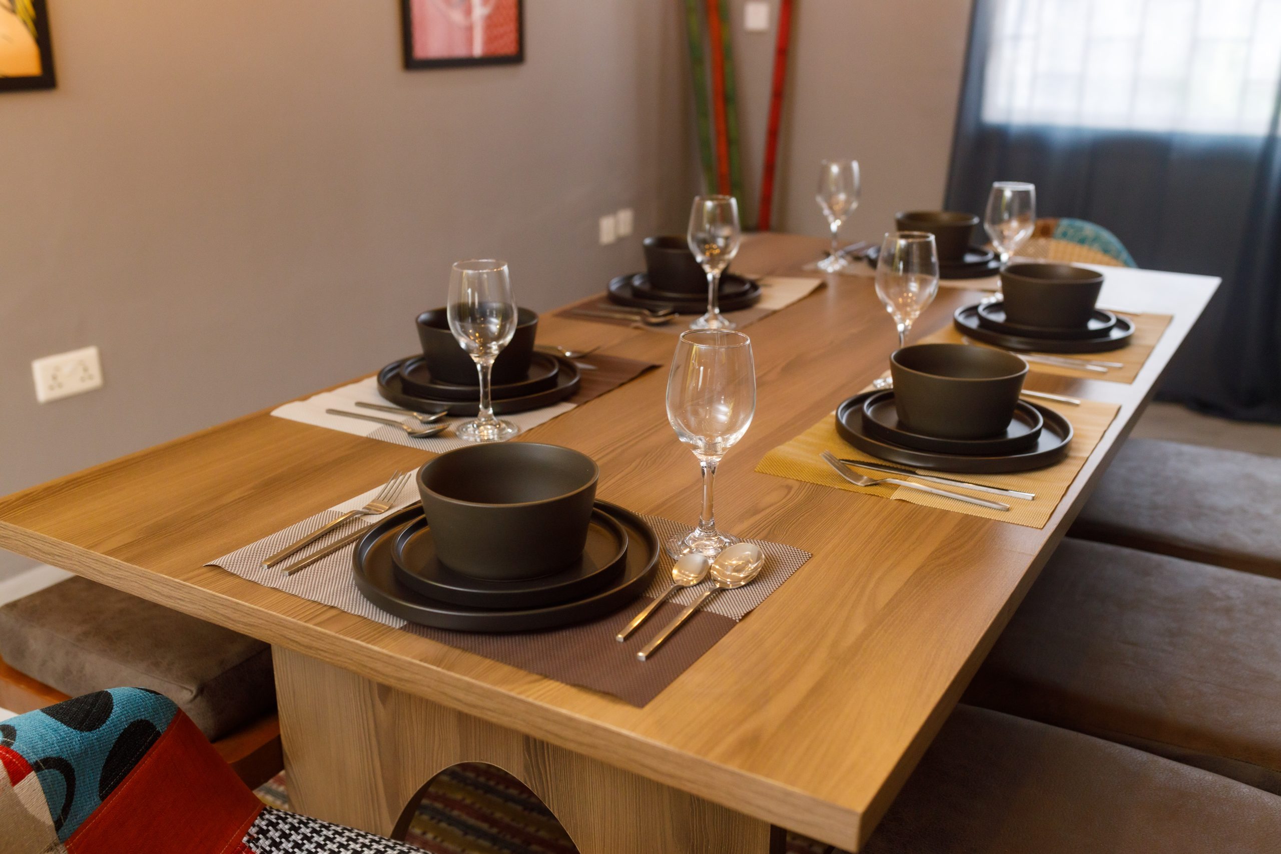 The elegant living room is the perfect place to relax, entertain and enjoy some quality time with your group. You are bound to fall in love with the uniquely designed decor and the abundance of space that makes this place light and airy. Sit back on the comfortable sofa and watch your favourite show on the flat-screen TV.